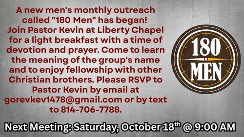 Tuesday evening Bible study meets at 6:30 PM at Liberty Chapel and online via Zoom